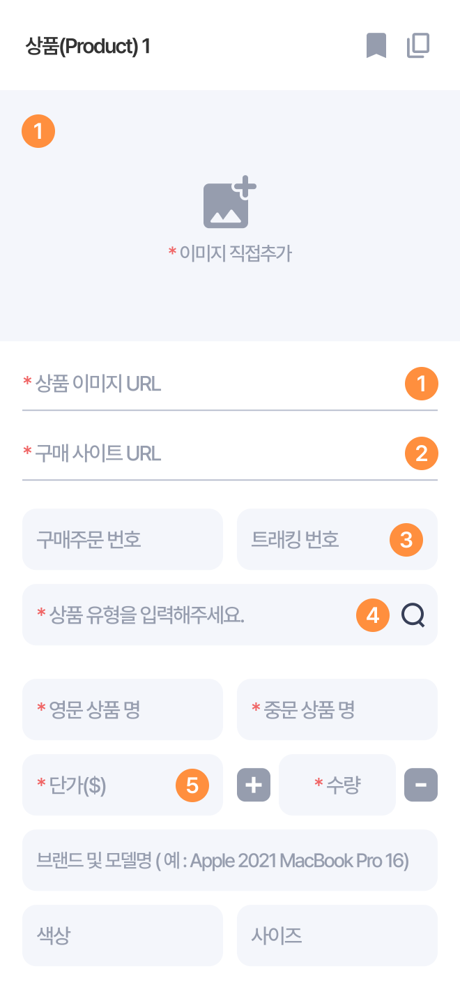 신청서 작성 후 해외 쇼핑몰에서 트래킹 번호가 생성되면 마이페이지에서 트래킹 번호를 입력하세요.