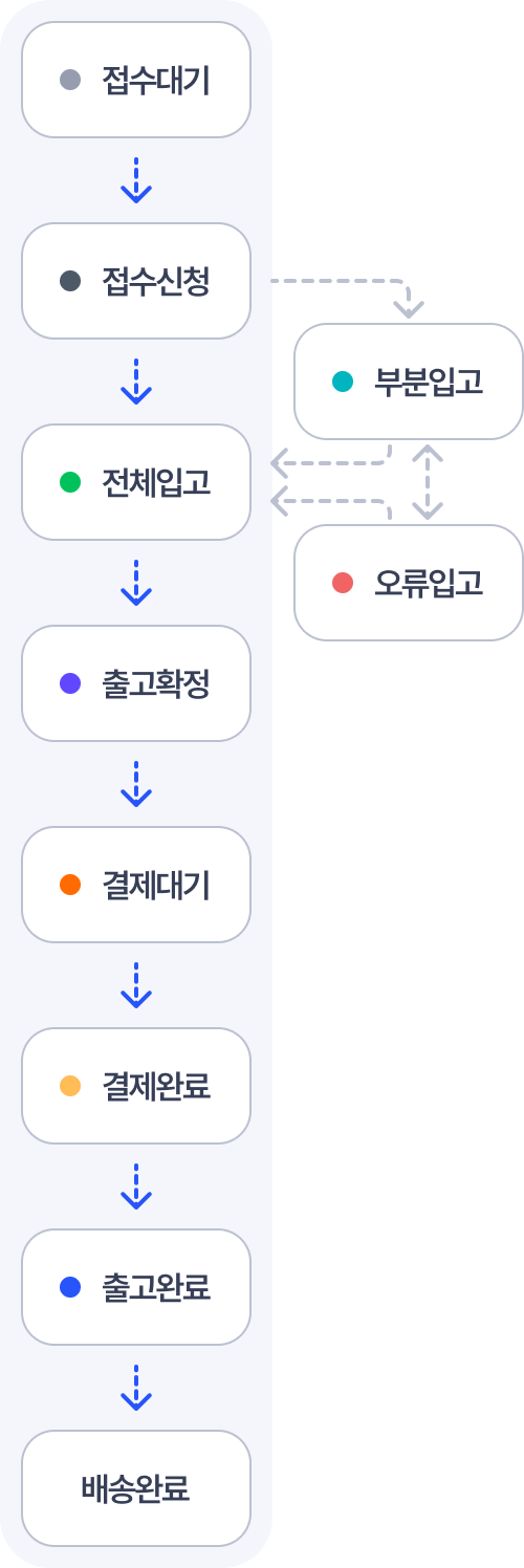 검수 이미지 확인 후 문제가 없으면 출고 확정 버튼을 눌러주세요. 도착한 상품이 신청서 내용과 다를 경우 오류입고로 상태가 변경됩니다. 자동 결제/출고 요청은 배송비 책정과 동시에 자동으로 처리됩니다.